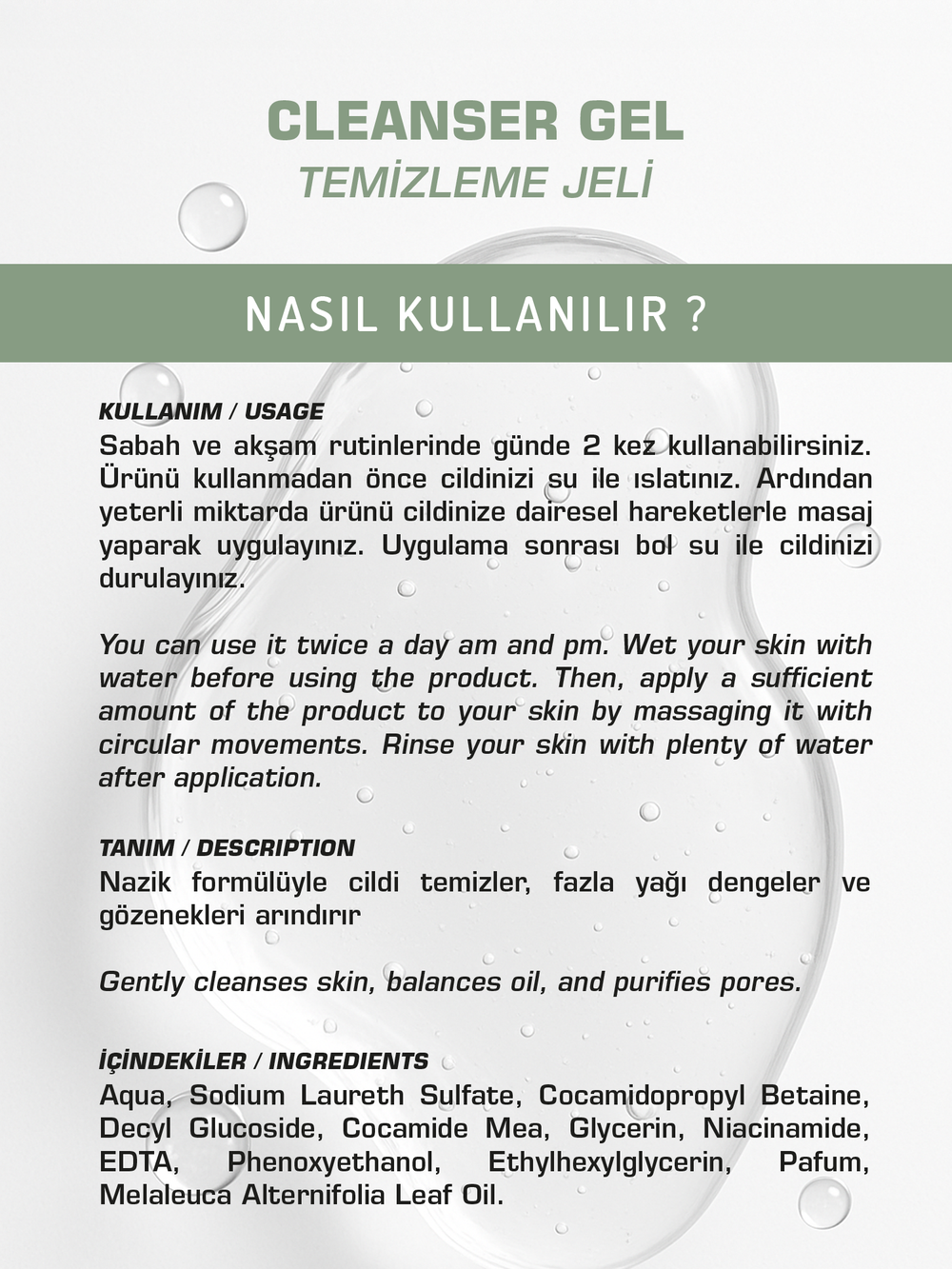 Vang Nemlendirici Temizleyici Jel, Tea Tree Oil ve Niacinamide %1 içeriğiyle tüm cilt tipleri için uygun özel bir formüle sahiptir. Cildinize derinlemesine temizlik, nemlendirici etki ve ferahlık sağlar. Tea Tree Oil ile ciltteki bakterileri temizlerken, Niacinamide ile cilt tonunu eşitler ve sağlıklı bir görünüm sunar.